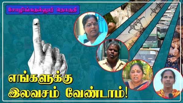 இவ்வாறு அரசியல் கட்சிகள் கவர்ச்சிகரமான அறிவிப்புகளை அள்ளிவீச, நீங்கள் அரசியல் கட்சிகளிடம் இருந்து என்ன எதிர்பார்க்கிறீர்கள்? உங்கள் தொகுதியில் தேர்வு செய்யப்படும் எம்.எல்.ஏ. என்ன செய்ய வேண்டும்? என்று ஒன் இந்தியா தமிழ் சார்பில் சோழிங்கநல்லூர் தொகுதிமக்களிடம் கேள்விகளை முன்வைத்தோம். நாம் கேள்வி கேட்டவுடனேயே, எங்களுக்கு அடிப்படை வசதிகள் இல்லை; கேட்டால் இதை நிறைவேற்றித் தர ஆள் இல்லை. தேர்தல் வரும்போதுதான் அரசியல்வாதிகள் இங்கு வந்து எட்டிப் பார்க்கின்றனர் என்று ஒரே போடாக போட்டனர் பலர்.
