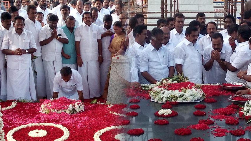 அவர்களை தொடர்ந்து அமைச்சர்கள் ஜெயக்குமார், செல்லூர் ராஜூ, செங்கோட்டையன், திண்டுக்கல் சீனிவாசன், ஆர்.பி.உதயகுமார் உள்ளிட்ட பலரும் தங்கள் தலைவர்களது நினைவிடங்களில் அஞ்சலி மற்றும் மரியாதை செலுத்தினர்.