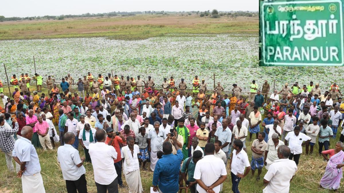 புதிய விமான நிலையம் அமைப்பதற்காக நிலம் விற்பதற்கான சிறப்பு வருவாய் துறை மையம் அமைக்கப்பட்டுள்ளது. நிலம் கையகப்படுத்த எதிர்ப்பு தெரிவித்து பரந்தூர் சுற்று வட்டார மக்கள் கடந்த 2 ஆண்டுகளாக தொடர் போராட்டத்தில் ஈடுபட்டு வருகின்றனர். சுமார் 690 நாட்களாக போராடி வருகிறார்கள். அதேபோல பரந்தூர் சுற்று வட்டார கிராம சபை கூட்டங்களிலும் விமான நிலையத்துக்கு எதிராக தீர்மானங்கள் நிறைவேற்றப்பட்டன.