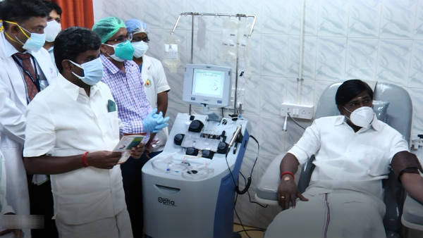 பிளாஸ்மா வழங்கும் மையத்தை தொடங்கி வைத்த பின்னர் செய்தியாளர்களிடம் பேசிய அமைச்சர் விஜயபாஸ்கர், கொரோனா தொற்றால் பாதிக்கப்பட்டு குணமடைந்தவர்களின் ரத்தத்தில் இருந்து பிளாஸ்மா பிரித்தெடுக்கப்படுகிறது. பாதிக்கப்பட்ட நோயாளிகள் குணமடைந்த 14 நாட்களுக்குப் பிறகு பிளாஸ்மா தானம் செய்யலாம்.