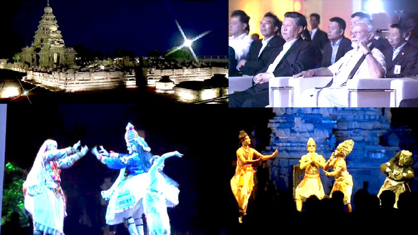 கலைநிகழ்ச்சிகள் குறித்து சீன அதிபர் ஜின்பிங்கிற்கு சீன மொழியில் முன்னதாக, எடுத்துரைக்கப்பட்டது. இதையடுத்து, முதலில் பரதநாட்டியத்துடன் நிகழ்ச்சி ஆரம்பமானது. சேரின் கைப்பிடியில் தாளம் போட்டபடி, தலையாட்டியபடி ரசித்தார் மோடி!