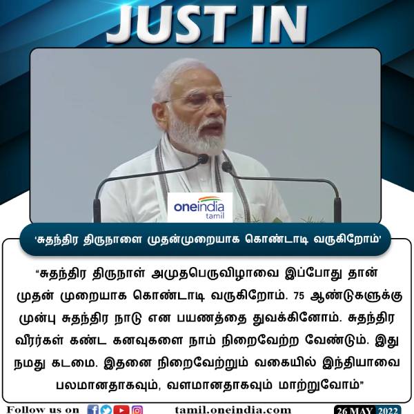 சுதந்திர திருநாள் அமுதபெருவிழாவை இப்போது தான் முதன் முறையாக கொண்டாடி வருகிறோம். 75 ஆண்டுகளுக்கு முன்பு சுதந்திர நாடு என பயணத்தை துவக்கினோம். சுதந்திர வீரர்கள் கண்ட கனவுகளை நாம் நிறைவேற்ற வேண்டும். இது நமது கடமை. இதனை நிறைவேற்றும் வகையில் இந்தியாவை பலமானதாகவும், வளமானதாகவும் மாற்றுவோம் - பிரதமர் மோடி