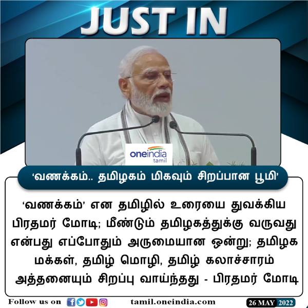 #JUSTIN | ‘வணக்கம்.. தமிழகம் மிகவும் சிறப்பான பூமி’ - பிரதமர் மோடி