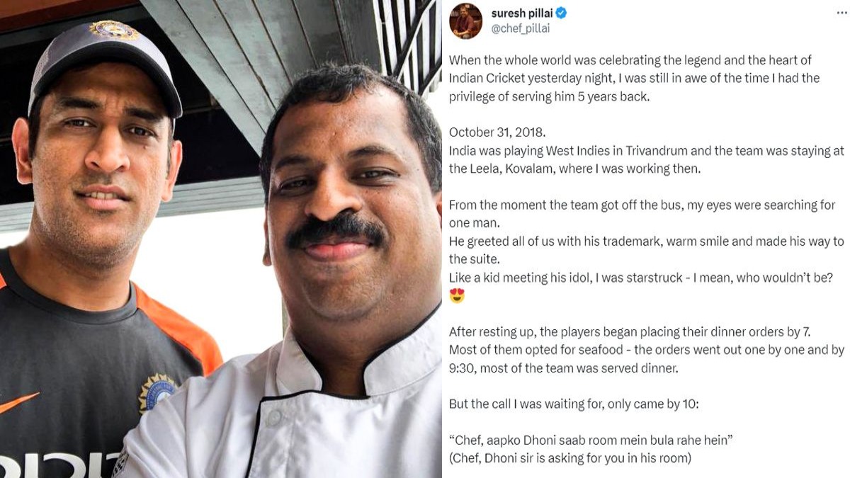 முழு உலகமும் இந்திய கிரிக்கெட்டின் மகத்தான சாதனையாளரான தோனியைக் கொண்டாடும்போது 5 ஆண்டுகளுக்கு முன்பு அவருக்கு உணவு பரிமாறும் பாக்கியம் எனக்கு கிடைத்ததைப் பிரமிப்போடு நினைத்துப் பார்க்கிறேன். அது 2018 ம் ஆண்டு அக்டோபர் மாதம் 31ம் தேதியாகும். அப்போது இந்தியா-வெஸ்ட் இண்டீஸ் இடையேயான போட்டி திருவனந்தபுரத்தில் நடந்தது. நான் பணிபுரிந்த கோவளம் லீலா ஓட்டலில் தான் இந்திய வீரர்கள் தங்கியிருந்தனர்.