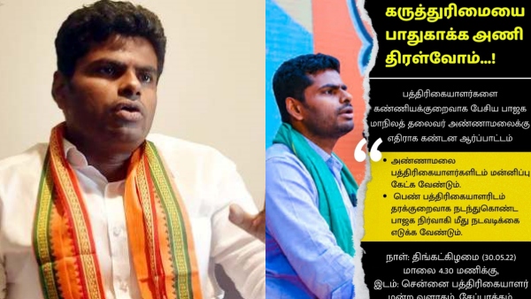 இந்த நிலையில்தான் அண்ணாமலை "பத்திரிகையாளர்களிடம் மன்னிப்பு கேட்க வேண்டும், பெண் பத்திரிகையாளரிடம் தரக்குறைவாக நடந்துகொண்ட பாஜக நிர்வாகி மீது நடவடிக்கை எடுக்க வேண்டும்" ஆகியவற்றை வலியுறுத்தி சென்னை பத்திரிகையாளர் மன்றம், மாற்றத்திற்கான ஊடகவியலாளர்கள் மையம், தமிழ்நாடு பத்திரிகையாளர் சங்கம், தமிழ்நாடு உழைக்கும் பத்திரிகையாளர் சங்கம் ஆகியவை கூட்டாக போராட்டம் அறிவித்துள்ளன. நாளை திங்கட்கிழமை (30.05.22) மாலை 4.30 மணிக்கு சென்னை சேப்பாக்கம் பத்திரிகையாளர் மன்ற வளாகம் அருகே இந்த போராட்டம் நடைபெறும் என அறிவிக்கப்பட்டுள்ளது.