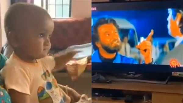 அந்த வகையில் சிறிய குழந்தை ஒன்று ரஜினியின் படத்தை பார்த்து ரசிக்கும் வீடியோ வைரலாகி வருகிறது. அதில் பாட்ஷா திரைப்படம் ஒளிபரப்படுகிறது. அந்த குழந்தை தனது உறவினர் மீது அமர்ந்து கொண்டு பார்க்கிறது.