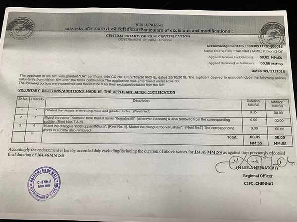 மறு தணிக்கை செய்யப்பட்டது சர்கார் திரைப்படம்.. எந்தெந்த காட்சி நீக்கம்? இதோ லிஸ்ட்