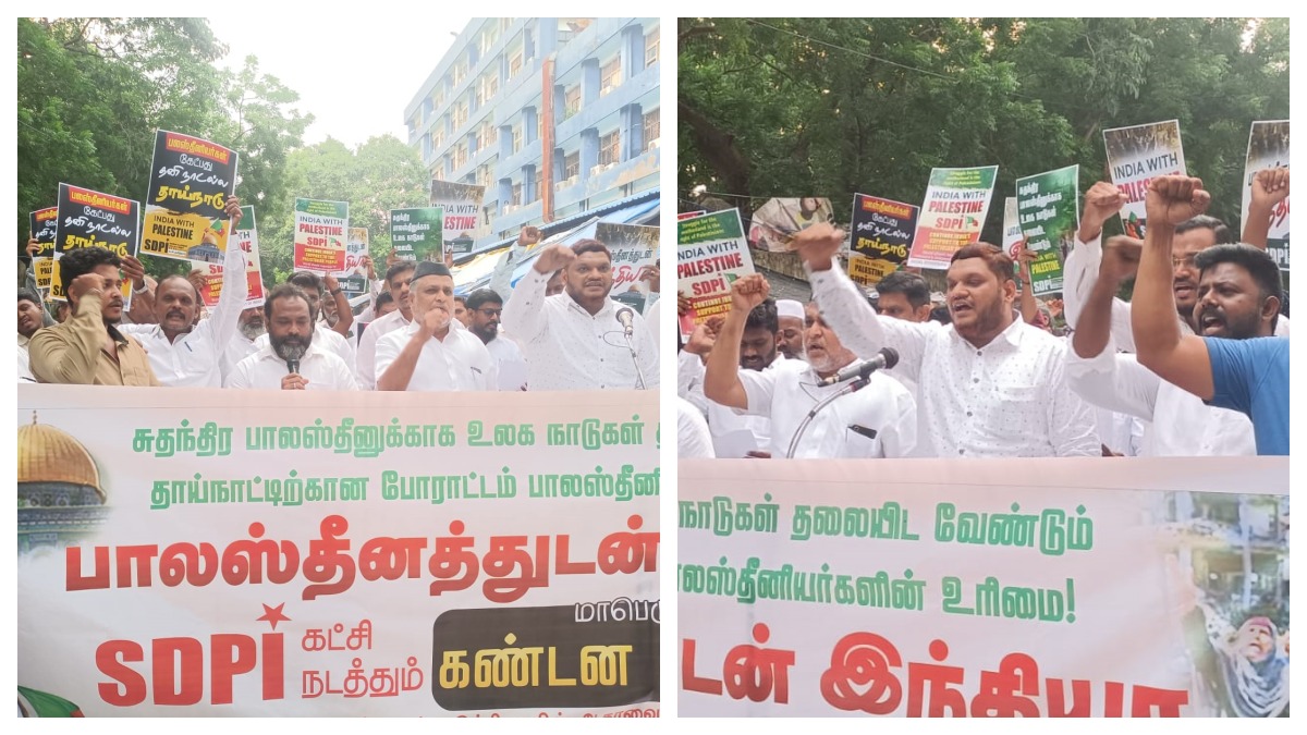 இந்நிலையில் இந்த தாக்குதலை பல்வேறு நாடுகளும் கண்டித்து வருகின்றன. இந்தியாவை பொறுத்த அளவில் மத்திய அரசு இஸ்ரேலுடன் இருப்பதாக கூறினாலும், காங்கிரஸ் உள்ளிட்ட எதிர் கட்சிகள் பாலஸ்தீனம் பக்கம் இருப்பதாக கூறியுள்ளன. அதேபோல தமிழ்நாட்டில் எஸ்டிபிஐ கட்சியும் இஸ்ரேலின் தாக்குதலுக்கு கண்டனம் தெரிவித்துள்ளது. இதன் தொடர்ச்சியாக சென்னை மாவட்ட ஆட்சியர் அலுவலகம் அருகே போராட்டத்திலும் ஈடுபட்டது. இதில்,