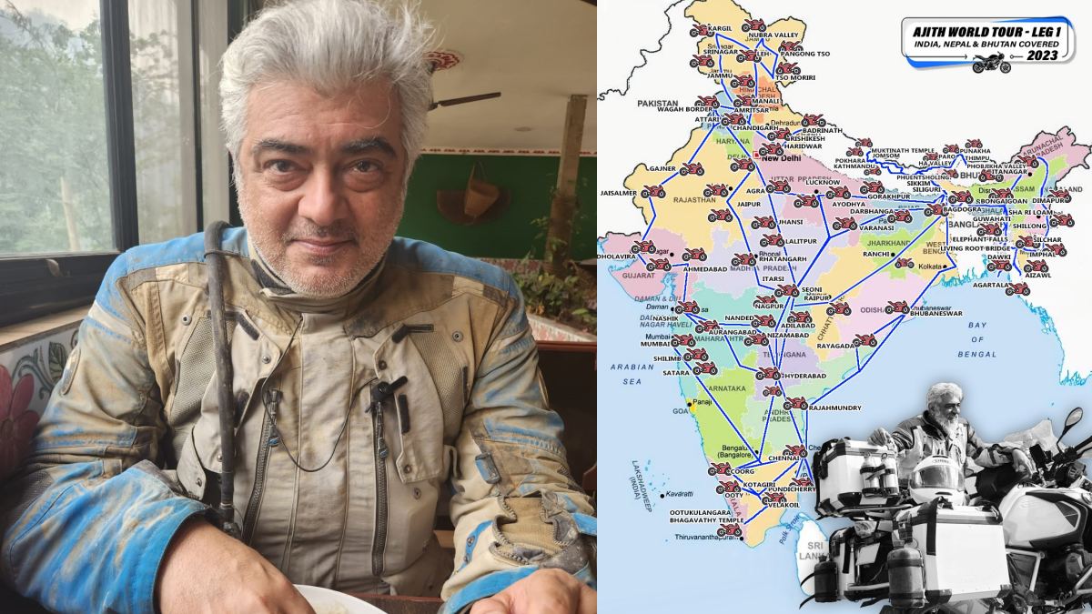 இதனிடையே நடிகர் அஜித்தின் மேலாளர் சுரேஷ் சந்திரா, அஜித்தின் இந்திய சுற்றுப்பயணம் குறித்த மேப்பை வெளியிட்டுள்ளார். அத்துடன் அஜித்தின் பயணம் குறித்தும் கூறியுள்ளார். அவர் வெளியிட்ட ட்வீட் பதிவில், "தனது சுற்றுப்பயணத்தில் சவாலான நிலப்பரப்புகளில் பயணம் செய்து மிக கடுமையான காலநிலைகளை அஜித் எதிர்கொண்டார். அஜித் இந்தியாவின் அனைத்து மாநிலங்களிலும் பயணம் செய்துள்ளார், நேபாளம் மற்றும் பூடானையும் கடந்து சென்றுள்ளார. அஜித்தின் உலக சுற்றுப்பயணத்தின் அடுத்த கட்டம் நவம்பர் 2023 இல் தொடங்கும்" இவ்வாறு சுரேஷ் சந்திரா கூறியுள்ளார்.