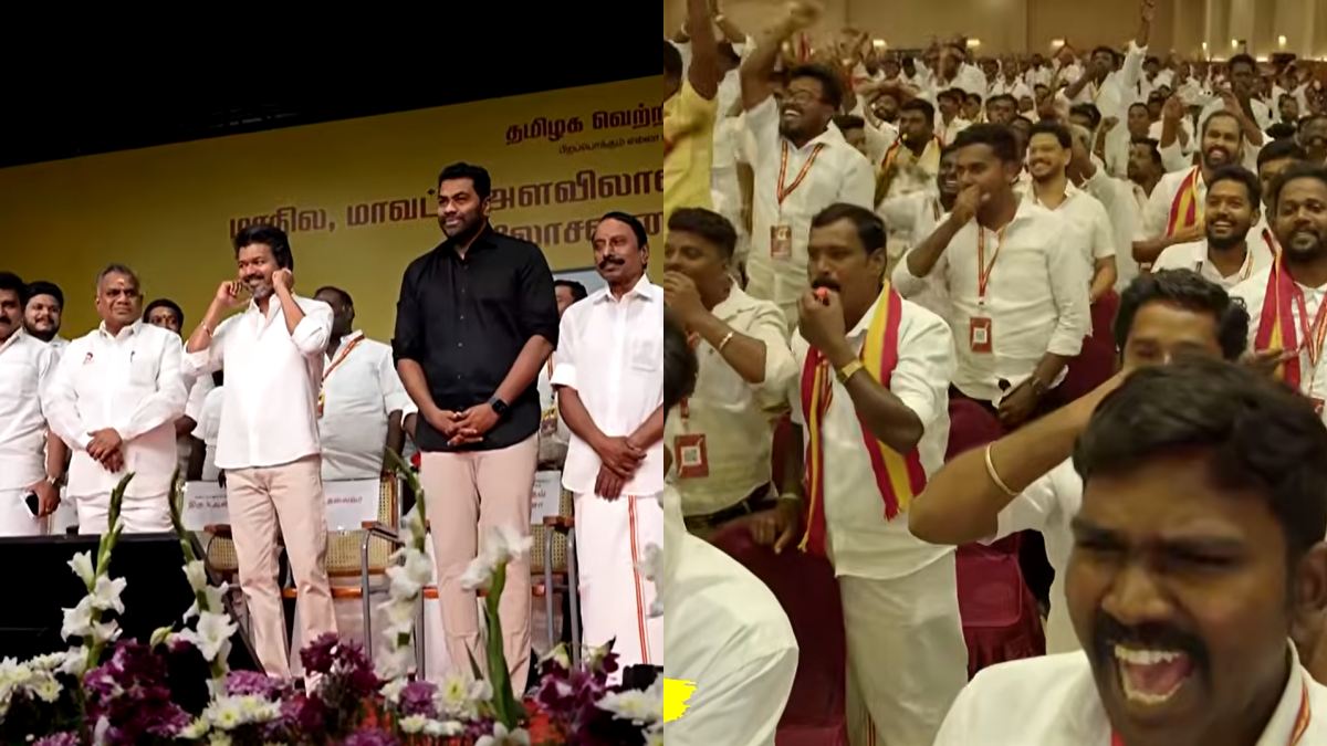 சென்னை: தமிழக வெற்றிக் கழகத்தின் செயல்வீரர்கள் கூட்டம் தற்போது சென்னையில் நடைபெற்று வருகிறது. இதுவரை தவெக கூட்டங்களில் நடக்காத சுவாரசிய சம்பவம் ஒன்று இன்று நடக்கும் தவெக கூட்டத்தில் நடைபெற்றது.