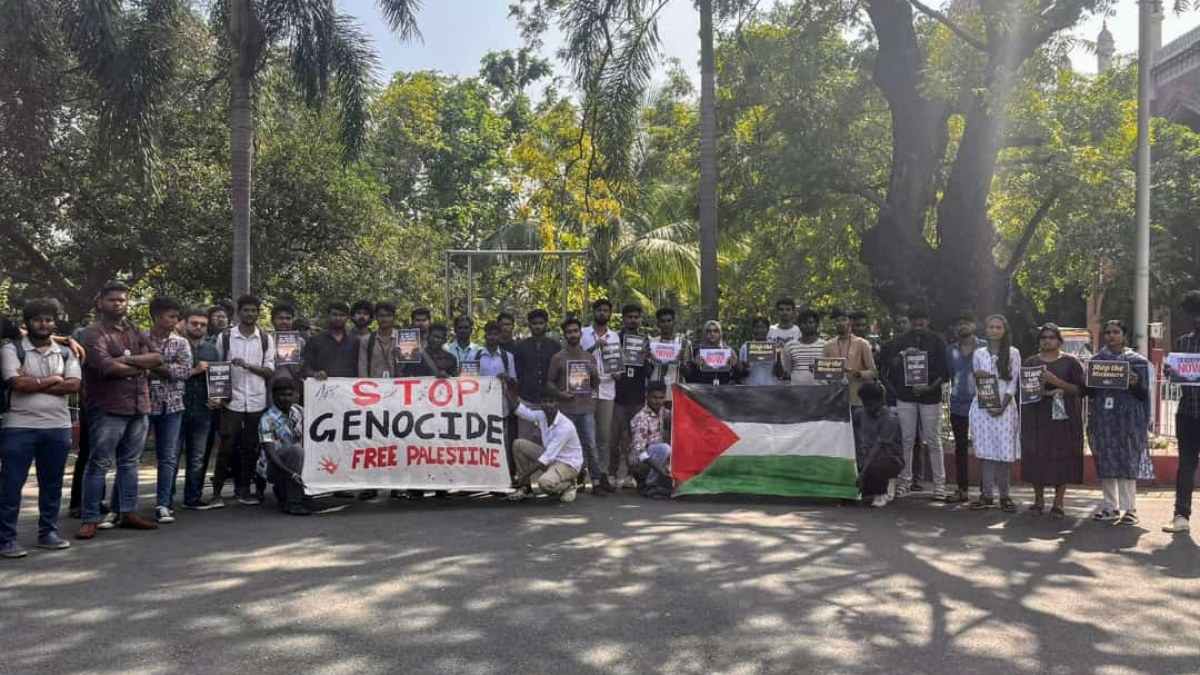 இஸ்ரேல் ராணுவம் காசா மீது தொடர்ந்து தாக்குதல்களை நடத்தி வருகிறது. பல ஆயிரக்கணக்கான குழந்தைகள், ஆண்கள், பெண்கள் என பல கொத்துக்கொத்தாக கொன்று குவிக்கப்பட்டு வருகின்றனர். இந்த நிலையில் காஸாவில் போர் நிறுத்தத்தை கொண்டுவர வலியுறுத்தியும், பாலஸ்தீனர்கள் மீதான இஸ்ரேலின் இனப்படுகொலையைக் கண்டித்தும் சென்னைப் பல்கலைக்கழகம் சேப்பாக்கம் வளாகத்தில் இந்திய மாணவர் இஸ்லாமிய அமைப்பு (SIO) சார்பாக மாணவர் ஒன்றுகூடல் நடைபெற்றது.