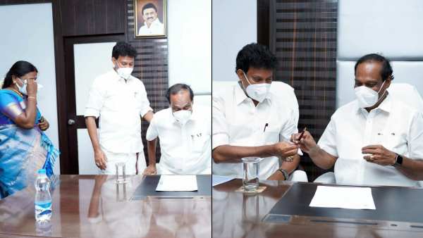 அவ்வாறு அவர் பதவியேற்கும் போது உடனிருந்த அவரது மனைவி அமுதா ஆனந்தக்கண்ணீர் வடித்து தனது நெகிழ்ச்சியை வெளிப்படுத்தினார்.