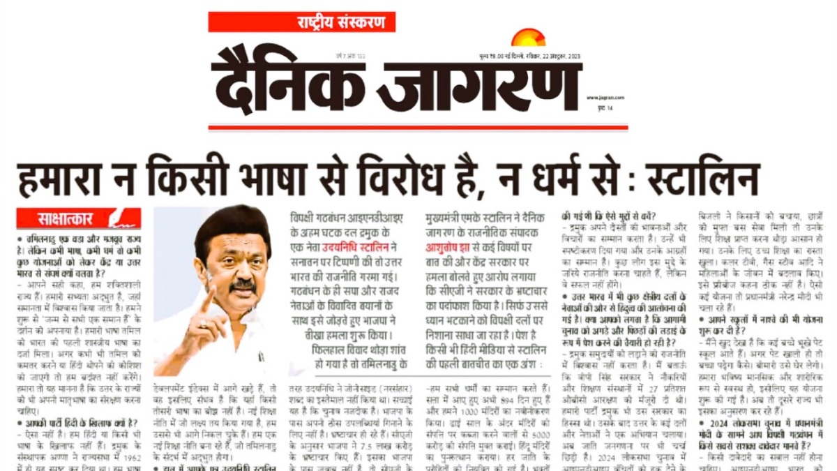 இரு வேறு சமுதாயத்தை எதிராக நிறுத்தி அரசியல் ஆதாயம் தேடமாட்டோம்! இந்தி நாளிதழுக்கு ஸ்டாலின் பளிச்!