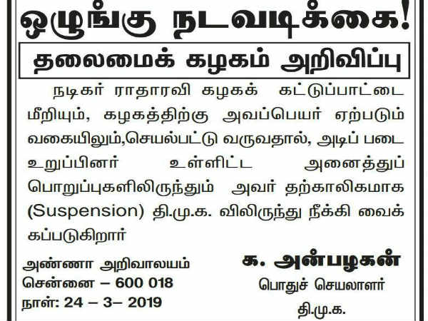 ராதா ரவிக்கு ஸ்டாலின் கண்டனம்