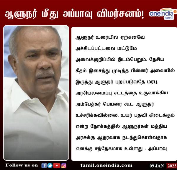 வேறு உயர்பதவிக்காக இதுபோல ஆளுநர் செயல்படுகிறாரோ என சந்தேகமாக உள்ளது - சபாநாயகர்.