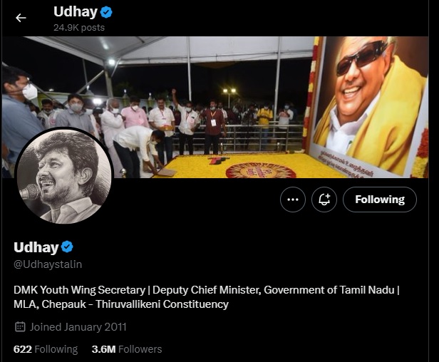 சமூக வலைதளப் பக்கத்தில் துணை முதல்வர் என மாற்றினார் உதயநிதி ஸ்டாலின்