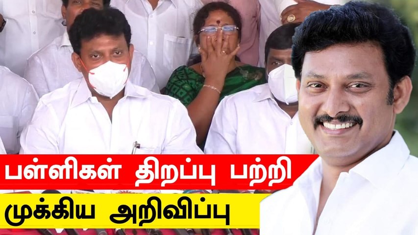 தமிழ்நாட்டில் 9, 10ம் வகுப்பு, 11ம் வகுப்பு மற்றும் 12ம் வகுப்புகளுக்கு பள்ளி திறப்பது குறித்து ஆலோசனை நடைபெற்று வருகிறது. லாக்டவுன் பிறப்பிக்கப்படும் முன்பாக மருத்துவ வல்லுனர்கள் உடன் முதல்வர் ஆலோசனை நடத்துவது வழக்கம். பள்ளிகளை திறக்க வேண்டும் என்று முடிவு செய்தால் அதைவிட கூடுதலாக, விரிவாக, முதல்வர் ஆலோசனை நடத்துவார். அந்த ஆலோசனையில் மருத்துவ வல்லுநர்களின் கருத்துக்களை கேட்டு அவர்கள் பள்ளிகளை திறக்க அனுமதித்தால் முதல்வர் அதற்கு சம்மதம் தெரிவிப்பார். அப்படி நிகழும் பட்சத்தில், மாணவர்கள் மற்றும் ஆசிரியர்களுக்கு எந்த மாதிரியான வழிகாட்டு நெறிமுறைகள் பின்பற்றப்பட வேண்டும் என்பது பற்றிய அப்போது அறிவிப்போம். இவ்வாறு, பள்ளிக்கல்வித் துறை அமைச்சர் மகேஷ் பொய்யாமொழி செய்தியாளர்களுக்கு பேட்டியளித்தார்.