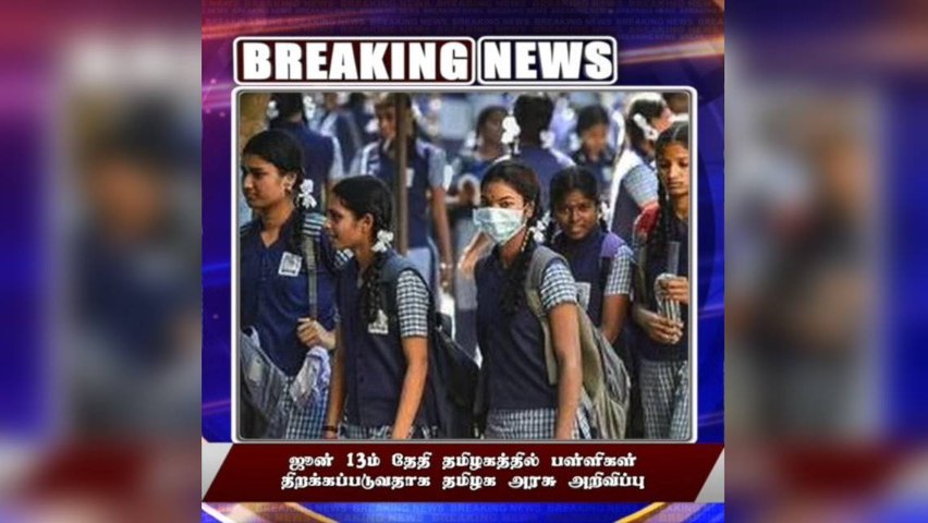இப்போது பள்ளிகள் திறக்கப்படும் நாள் தள்ளிப்போக வாய்ப்புள்ளது. 10, 11,12 ஆம் வகுப்பு மாணவர்களுக்கான விடைத்தாள் திருத்தும்பணி , ஆசிரியர்களுக்கான பயிற்சி வகுப்புகள் உள்கட்டமைப்பை மேம்படுத்தும் பணிகள் ஆகியவை காரணமாக ஜூன் மாதம் இறுதியில் பள்ளிகள் திறப்பு பள்ளிக்கல்வித்துறை திட்டமிட்டுள்ளதாக தகவல் வெளியானது.
