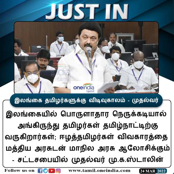 தமிழக சட்டப்பேரவை Live : இலங்கைத் தமிழர்களுக்கு விரைவில் விடிவுகாலம்- முதல்வர்