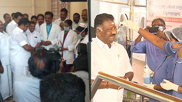 இந்நிலையில் இன்று தலைமை செயலக 10ஆம் எண் நுழைவு வாயிலில் முதல்வர் மற்றும் துணை முதல்வர் ஆகியோருக்கு சுகாதார துறையினர் கொரோனா பரிசோதனை செய்தனர். இதில் முதல்வர் உடல் வெப்பநிலை 93.1 பாரன்ஹீட், துணை முதல்வர் பன்னீர் செல்வத்துக்கு 98.6 பாரன்ஹீட் என காட்டியது. தொடர்ந்து சானிடைசர் மூலம் கைகளை சுத்தம் செய்து கொண்டனர்.