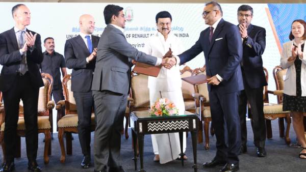 சென்னை: தமிழ்நாடு அரசு மற்றும் பிரபல கார் நிறுவனமான ரேனால்ட் நிஸ்ஸான் ஆட்டோமோட்டிவ் இந்தியா பிரைவேட் லிமிடெட் நிறுவனத்திற்கும் இடையே தமிழ்நாடு முதலமைச்சர் மு.க. ஸ்டாலின் முன்னிலையில் புரிந்துணர்வு ஒப்பந்தம் கையெழுத்தாகி இருக்கிறது. ரூ.3,300 கோடி முதலீட்டுடன் 2000 பேருக்கு இந்த ஒப்பந்தத்தின் மூலம் வேலைவாய்ப்பு கிடைக்கும்.