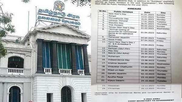 தமிழக அரசு விடுமுறை நாட்கள் 2023.. வெளியானது அறிவிப்பு.. 5 பண்டிகைகள் ஞாயிற்றுக்கிழமை வருகிறது