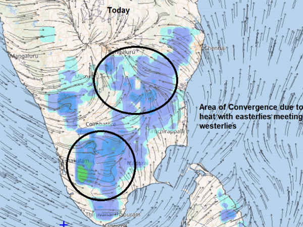 சேலம், நாமக்கல், கரூர், திருவண்ணாமலை, தருமபுரி, வேலூர் ஆகிய பகுதிகளில் கடும் வெப்பம் நிலவி வருகிறது. இதனால் இங்கு மழை பெய்யும். பெங்களூரிலும் லேசான மழைக்கு வாய்ப்புண்டு.