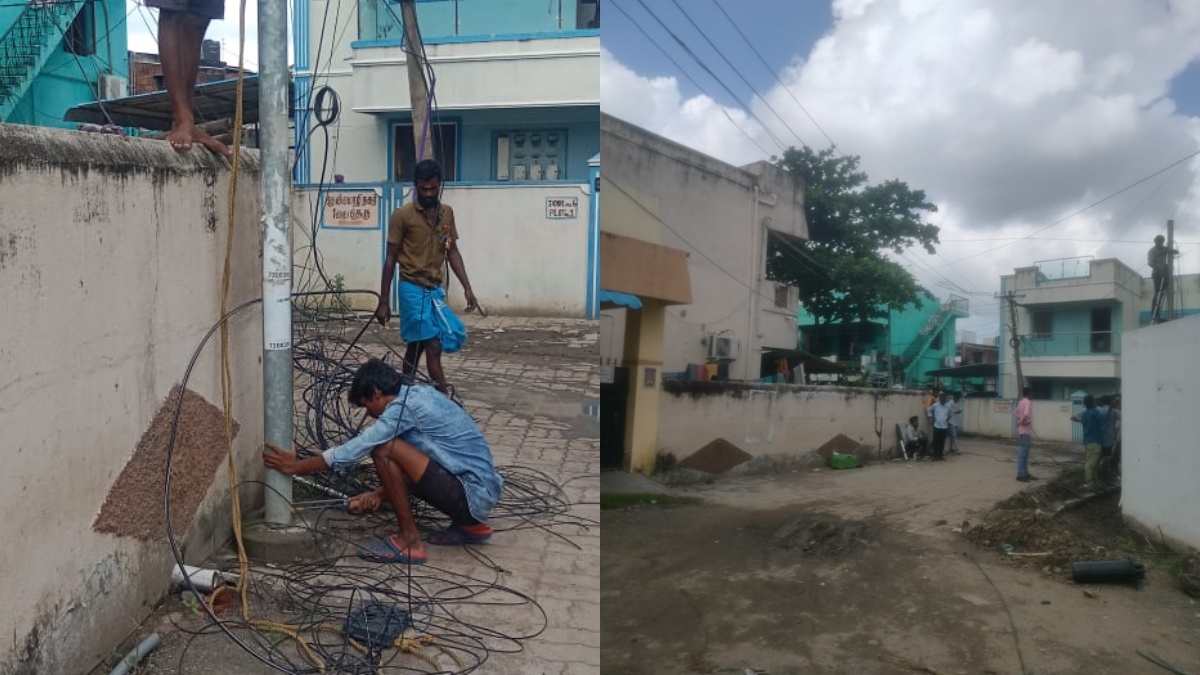 டேவிட் மனோகரன் என்பவர் வெளியிட்ட ட்வீட் பதிவில், சென்னை பழைய பல்லாவரம், தேன்மொழி நகர், 1வது தெருவில், மின்கம்பத்தின் கீழ் அமைந்திருக்கிறது ஜியோ செல்போன் கம்பம், மின்சார வயர்கள் ஆபத்தானமுறையில் ஜியோ செல்போன் கம்பத்தில் தொங்குகிறது. அந்த கம்பத்தில் மின்சாரம் பாய்கிறது எனவே அதனை உடனே கற்ற வேண்டும் என்று கோரிக்கை வைத்தார்.