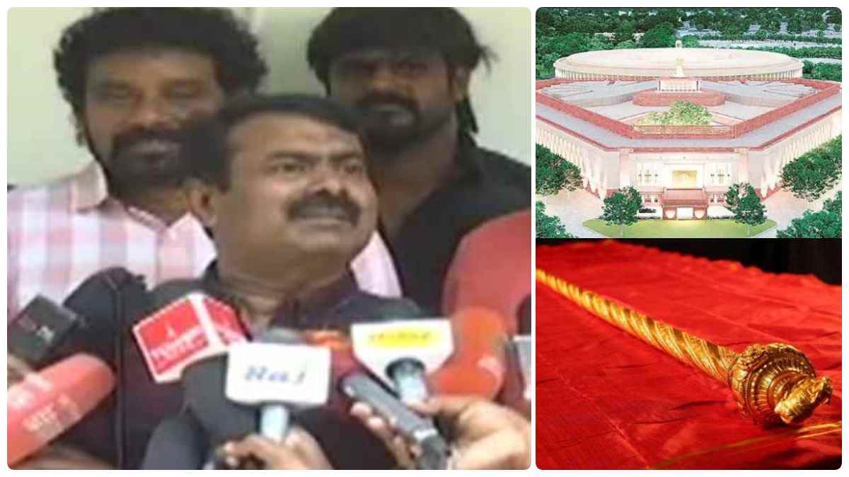 நாம் தமிழர் கட்சி ஒருங்கிணைப்பாளர் சீமான் செய்தியாளர்களை சந்தித்தார். அப்போது அவர் கூறியதாவது:- பாட்டன் காலத்து செங்கோல் இது கிடையாது. உம்மிடி பங்காருவில் தயாரித்த செங்கோல் இது. சோழ செங்கோல் என்று சொல்லாமல் உம்மிடி செங்கோல் என்று வேண்டுமானால் சொல்லலாம். நேரு கையில் ஒரு செங்கோலை ஆதீனங்கள் கொடுத்தாங்க... விடுதலை செய்த போது கொடுத்தீர்கள்.. அப்போதும் இதையேதான்சொல்லி கொடுத்தீர்கள்.