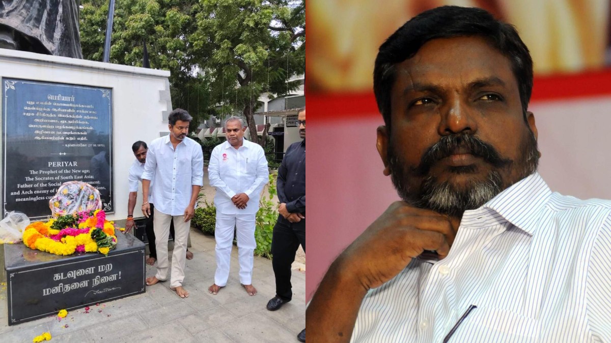 அவரு பிடிச்சுட்டாரு.. தந்தை பெரியார் நினைவிடத்தில் சம்பவம் செய்த விஜய்! திருமாவளவன் சொன்ன வார்த்தை!