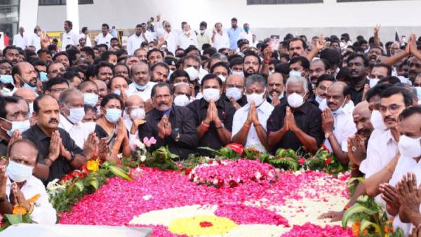 இந்த நிலையில் இன்றைய தினம் ஜெயலலிதாவின் நினைவு நாள் அனுசரிக்கப்படுகிறது. இதையொட்டி மெரினாவில் உள்ள ஜெயலலிதாவின் நினைவிடத்தில் அதிமுக ஒருங்கிணைப்பாளர் ஓ பன்னீர் செல்வமும் இணை ஒருங்கிணைப்பாளர் எடப்பாடி பழனிச்சாமியும் இணைந்து மரியாதை செலுத்தினார்கள். தற்காலிக அவைத் தலைவர் தமிழ்மகன் உசேனும் மரியாதை செலுத்தினார். அவர்கள் கருப்பு நிறத்தில் ஆடை அணிந்து கொண்டு ஜெயலலிதா நினைவிடத்தில் மலர் வளையம் வைத்தனர். அதிமுக எம்பிக்கள், எம்எல்ஏக்கள், மூத்த நிர்வாகிகள் உள்ளிட்டோர் மரியாதை செய்தனர். இதையடுத்து இந்த கூட்டத்தில் உறுதிமொழியை ஏற்றனர். அதில் அம்மா உணவகம், அம்மா மருந்தகம் திட்டங்களை நிறுத்துவோரின் கொட்டங்கள் அடக்கப்படும், நீட் தேர்வு ரத்து, கல்விக்கடன் ரத்து என்று பொய் வாக்குறுதியளித்த முதலமைச்சர், இனியும் தமிழர்களை ஏமாற்ற விடமாட்டோம். அதிமுக உள்ளாட்சி தேர்தலில் மகத்தான வெற்றி பெற வேண்டும் என உறுதிமொழி ஏற்றனர்.