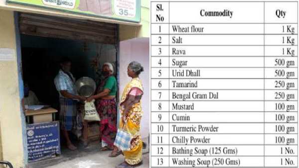 பொதுமக்களின் சிரமத்தைக் குறைக்கும் வகையில் நடமாடும் வண்டிகளில் காய்கறி, பழங்கள் விற்பனை செய்வது போல் மளிகை பொருட்களும் விற்பனை செய்யும் பணிகள் நேற்று முதல் தொடங்கின. மேலும் யாரும் பசியின்றி இருக்கக் கூடாது என்பதற்காக 13 மளிகை பொருட்கள் அடங்கிய தொகுப்பை அனைத்து அரிசி குடும்ப அட்டைதாரர்களுக்கும் நியாய விலைக் கடைகள் மூலம் வழங்குவதாக அறிவிக்கப்பட்டது.