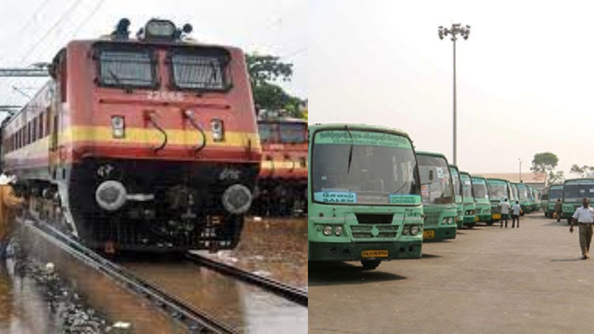 ரயில்கள் போக்குவரத்து பாதிக்கப்பட்டதால் பொதுமக்கள் தங்கள் சொந்த ஊருக்கு செல்ல ஏதுவாக சிறப்பு பேருந்துகளை இயக்க தமிழக அரசு போக்குவரத்து கழகம் முடிவு செய்துள்ளது. தெற்கு ரயில்வே அதிகாரிகள் கோரிக்கையை ஏற்று 100 சிறப்புப் பேருந்துகளை இயக்கிட நடவடிக்கை மேற்கொள்ளப்பட்டுள்ளது. இது தொடர்பாக போக்குவரத்து கழகம் கூறியிருப்பதாவது:-