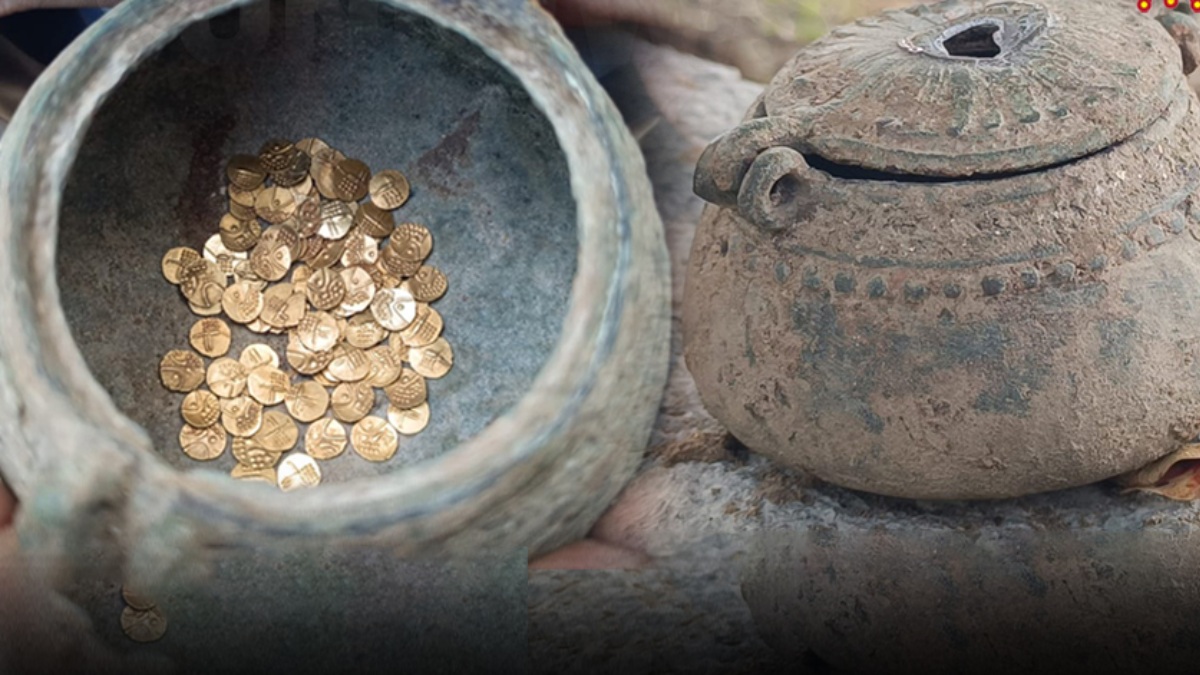 திருப்பத்தூர் சுந்தரம்பள்ளி பகுதியில் தனது விவசாய நிலத்தை ஜேசிபி இயந்திரம் மூலம் தோண்டி சமன் செய்யும் பணியில் ஆதவன் என்பவர் ஈடுபட்டார். அப்போது ஒரு குடுவையில் தங்கக் காசுகள் கிடைத்துள்ளன. பழங்காலத்து குடுவையில் 86 தங்க நாணயங்கள் அடங்கிய புதையல் கிடைத்துள்ளன.