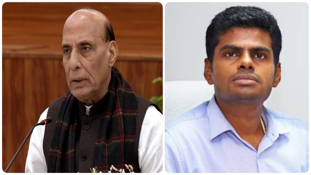 பாஜகவின் சாதனை விளக்க பொதுக்கூட்டத்தில் மத்திய அமைச்சர் ராஜ்நாத் சிங் பேசுகையில், "அண்ணாமலை, அண்ணாமலை, அண்ணாமலை பற்றிய உங்களுக்கு சில விஷயங்களை தெரிவிக்க விரும்புகிறேன். நான் பல வருடங்களாக அரசியலில் இருக்கிறேன். ஒருவரை பார்த்த உடன் என்னால் சொல்ல முடியும். அவர் உங்கள் தமிழ்நாட்டிற்கு மட்டும் தலைவர் இல்லை.. அவர் மொத்த இந்தியாவிற்குமான தலைவராக உருவாகிக் கொண்டிருக்கிறார்.