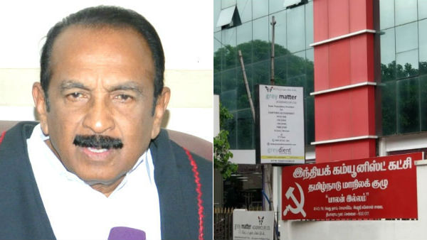 சென்னை: குஜிலியம்பாறை ஒன்றிய இந்திய கம்யூனிஸ்ட் கட்சியினர் நடத்தி வரும் ஃபேஸ்புக் பக்கத்தில் கம்யூனிஸ்ட் அலுவலகத்தை விபச்சார விடுதி என பதிவிட்டுள்ளதற்கு மதிமுக பொதுச்செயலாளரும் ராஜ்யசபா எம்.பி.யுமான வைகோ கடும் கண்டனம் தெரிவித்துள்ளார்.