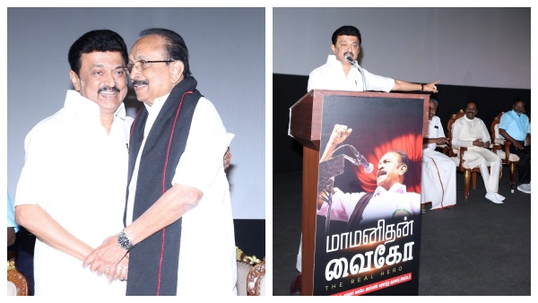 'மாமனிதன் வைகோ' ஆவணப்படத்தை வெளியிட்டுப் பேசிய முதல்வர் மு.க.ஸ்டாலின், "சத்யம் திரையரங்கில் பல சினிமாக்கள் திரையிடப்பட்டுள்ளன. அதில் பல ஹீரோக்களைப் பார்த்துள்ளோம். திரைப்படத்தில் வரும் ஹீரோக்கள் கதாபாத்திரங்கள் சித்தரிக்கப்பட்டவை. வைகோ சித்தரிக்கப்படாத ரியல் ஹீரோ.