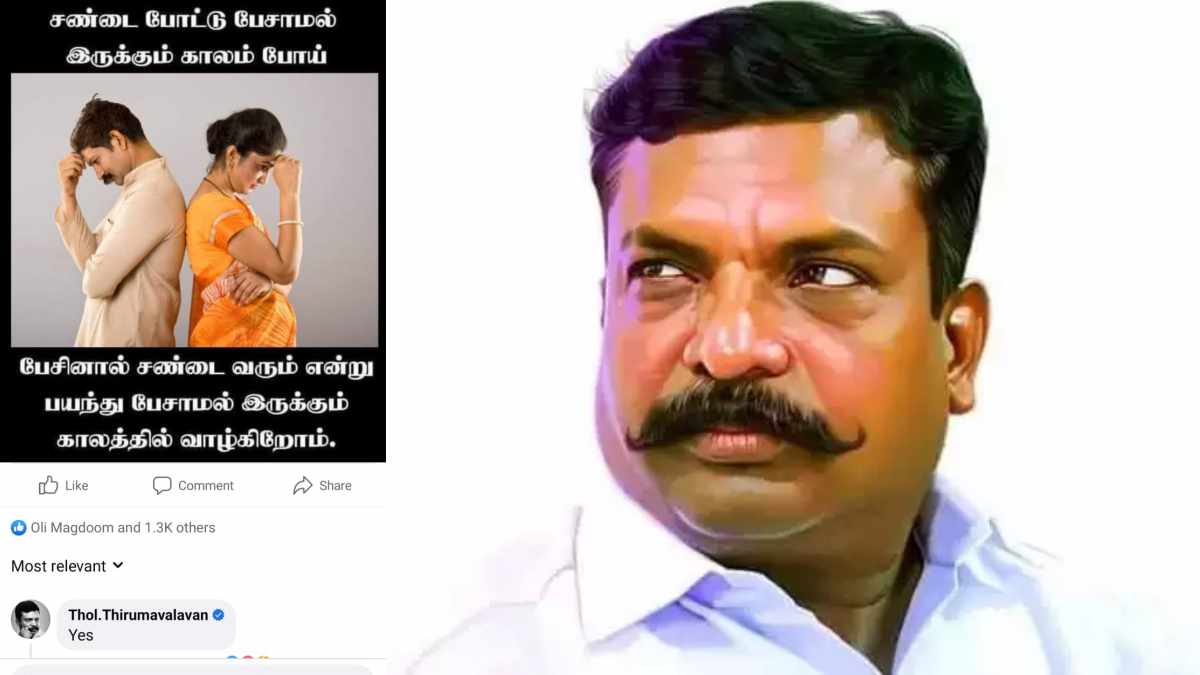 திருமாவளவனா இது? மீம்சுக்கு போட்ட “கமெண்ட்”.. ரணகளமான பேஸ்புக்! “பேசினால் சண்டை வரும் என பயந்து..”