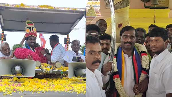 அப்போது அங்குசெட்டிபாளையம் பகுதியில் தொண்டர்கள் தூவிய மலர் மழையில் நனைந்தபடி வாக்கு சேகரிப்பில் ஈடுபட்டார். பின்பு, அம்மன் கோவிலில் வேட்பாளர் வேல்முருகன் வழிபாடு செய்தார். அப்போது பண்ருட்டி சட்டமன்ற தொகுதியில் திமுக கூட்டணி வேட்பாளர் வேல்முருகன் வெற்றியை உறுதி செய்யும் வகையில் திமுக ஊராட்சி செயலாளர் சிற்றரசு தலைமையில் திமுகவினர் வீரவாள் வழங்கி உற்சாக வரவேற்பு அளித்தனர்.
