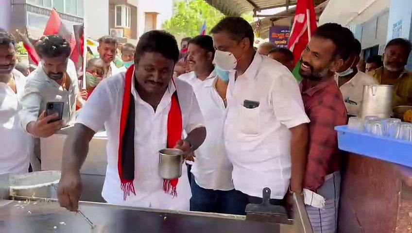 சொய்ங் சொய்ங்.. ஒரே தோசை.. அதுவும் 'ஒன்சைட்' தோசை.. விருகை திமுக வேட்பாளர் 'அதகளம்'!