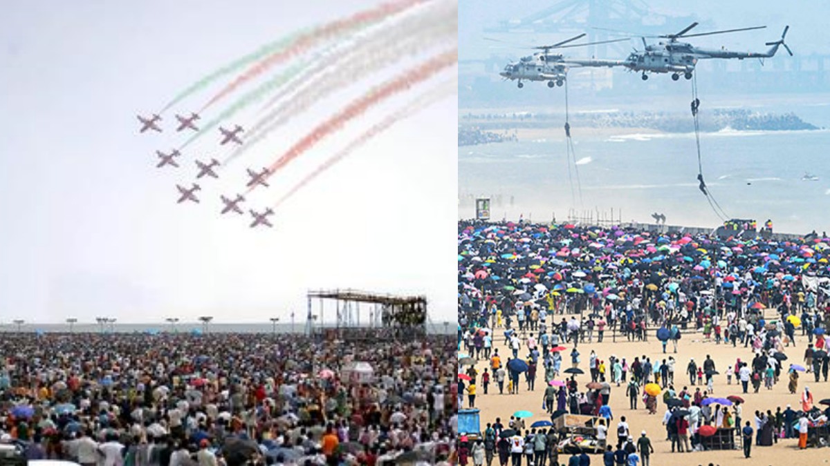 சென்னை மெரினா கடற்கரையில், விமானப்படை தொடங்கப்பட்டு 92வது ஆண்டு நிறைவை முன்னிட்டு, இந்திய விமானப்படை சார்பாக வான் சாகச நிகழ்ச்சி நேற்று முன்தினம் (அக்டோபர் 6) நடத்தப்பட்டது. இந்த நிகழ்ச்சி காலை 11 மணி முதல் மதியம் 1 மணி வரை நடந்தது. இதைக் காண 10 லட்சத்திற்கும் மேற்பட்டோர் கூடினர். இதனால் சென்னை முழுக்க கடுமையான போக்குவரத்து நெரிசல் ஏற்பட்டது.