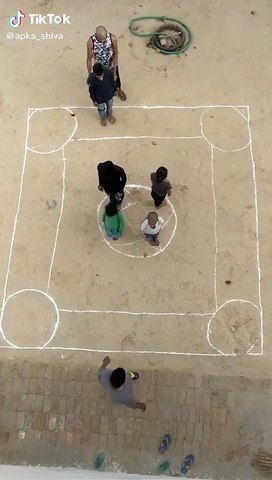 நடுவில் 4 பேரை நிற்க வைத்துள்ளனர். எதிரெதிரே ஒருவர் என இருவர் நின்றுக் கொண்டுள்ளனர். ஒருவரை ஸ்டிரைக்கராக பயன்படுத்துகிறார்கள். முதலில் இந்த ஸ்டிரைக்கர் நபரை ஒருவர் பிடித்து 4 பேர் மீது தள்ளுகிறார். அந்த 4 பேரில் ஒருவர் போய் 4 மூலையில் உள்ள வட்டத்தில் விழுகிறார்.