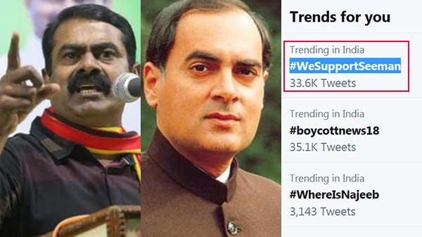 ராஜீவ் காந்தி கொலை விவகாரம்... #WeSupportSeeman ட்விட்டரில் டிரெண்டிங்கான சீமான்