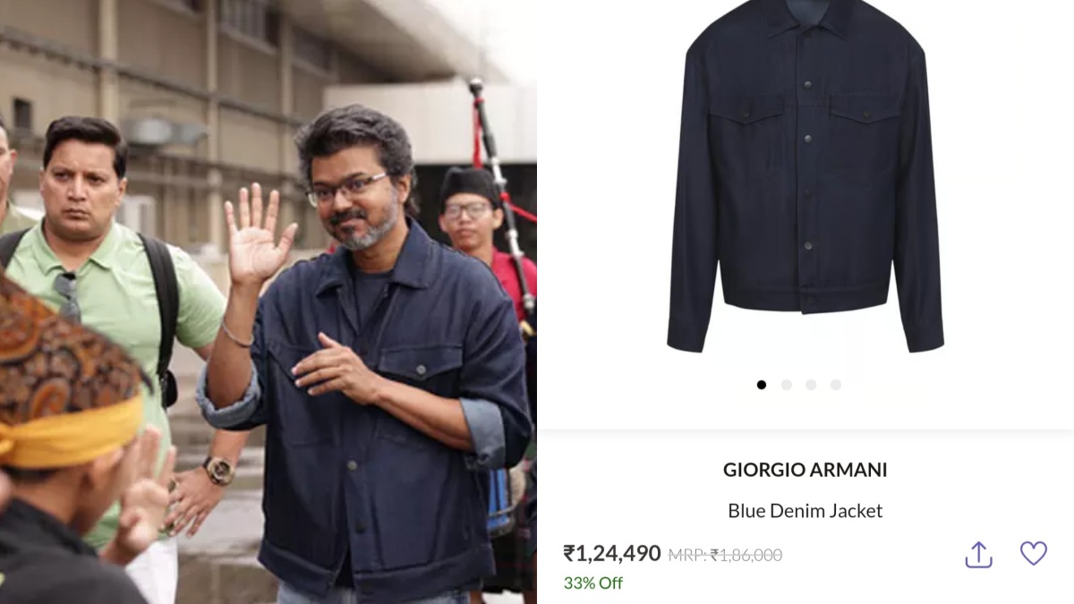 அப்போதுதான் அந்த ஸ்டைலான நீல நிற ஜாக்கெட் GIORGIO ARMAN-ன் BLUE DENIM Jacket-ன் விலை ரூ 1,24,490 என தெரியவந்தது. இதை பார்த்த ரசிகர்கள் ஒன்றரை லட்சத்தில் ஜாக்கெட்டா என வாயை பிளந்து பார்க்கிறார்கள்.