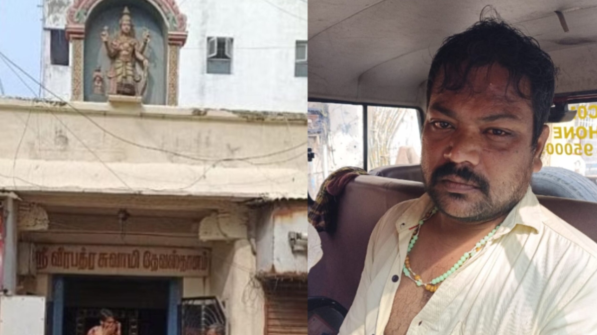சென்னை கொத்தவால்சாவடி கோவிந்தப்ப நாயக்கர் தெருவில் வீரபத்திர சுவாமி கோயில் அமைந்துள்ளது. இந்த பகுதியை சேர்ந்தவர் 38 வயதான முரளி கிருஷ்ணன். இவர் மது போதையில் கோயிலுக்கு வந்துள்ளார்.