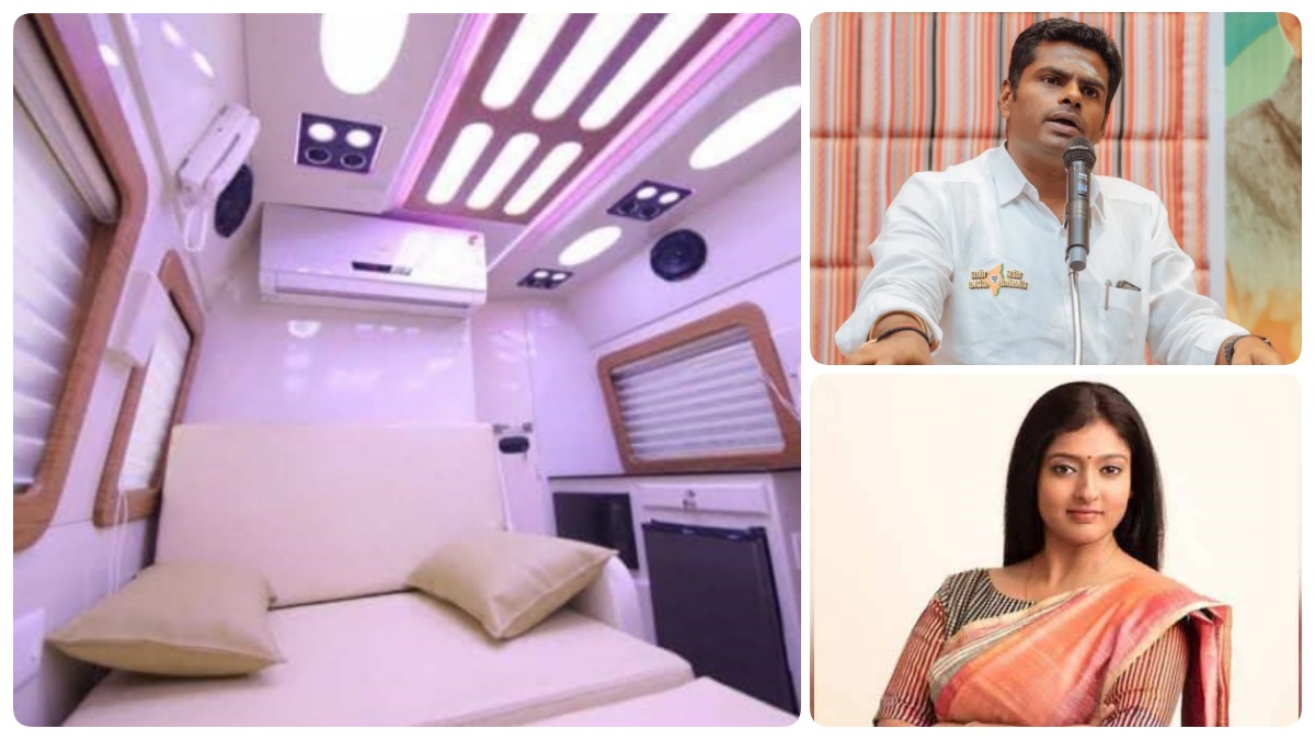 பல நவீன வசதிகளுடன் இந்த கேரவன் உட்பகுதி வடிவமைக்கப்பட்டு உள்ளது. மெத்தை படுக்கை , ஏசி, மைக்ரோவேவ் உள்ளிட்ட வசதிகள் உள்ளன. அண்ணாமலைக்காக பிரத்யேகமாக ரெடியாகியிருக்கும் இந்த கேரவன் குறித்து காயத்ரி ரகுராம் விமர்சனத்தை முன்வைத்துள்ளார். இது குறித்து காயத்ரி ரகுராம் தனது ட்விட் பதிவில் கூறியிருப்பதாவது:-