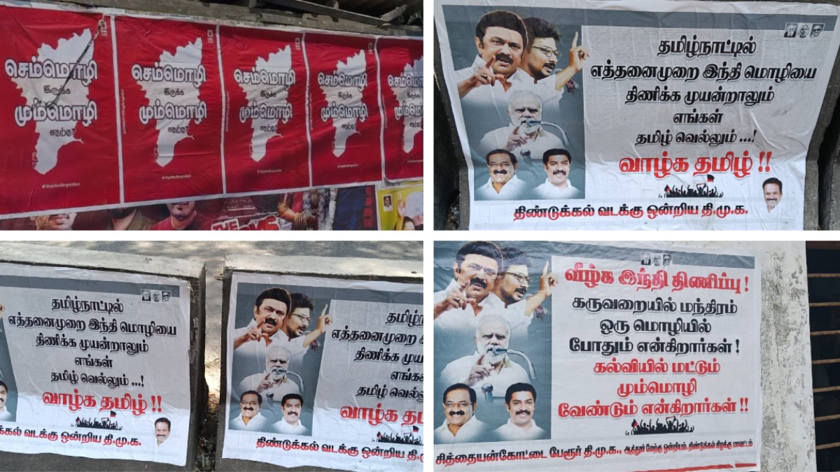 செம்மொழி இருக்க மும்மொழி எதற்கு? தமிழகம் முழுவதும் திமுக இந்தி திணிப்பு எதிர்ப்பு போஸ்டர் யுத்தம்!