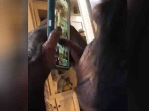 சிம்பன்ஸி செல்போன் பயன்படுத்தும் வீடியோ வைரலாகியுள்ளது.