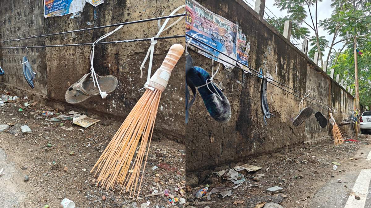 தடுப்புச் சுவர்களில் சிறுநீர் கழிக்காதவாறு சுவருக்கு முன்பு நீண்ட ஒயர் கட்டிவிட்டு அதில் செருப்பு, துடைப்பம் உள்ளிட்டவற்றை மாட்டி வைத்துள்ளோம். இங்கு சிறுநீர் கழித்தால் செருப்பு, துடைப்பத்தால் அடிக்கப்படும் என்று எச்சரிக்கும் வகையில் இந்த முயற்சி மேற்கொள்ளப்பட்டுள்ளது. இப்பகுதியின் சுகாதாரம், பொதுமக்களின் பாதுகாப்பை கருத்தில் கொண்டு இந்த முயற்சி மேற்கொள்ளப்பட்டுள்ளது என்று தெரிவித்தனர்.
