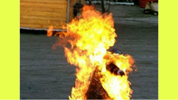 இதனால் சோகத்தில் இருந்த சவுகத் அலி, நேற்று முன்தினம் இரவு திடீரென போலீஸ் ஸ்டேசனுக்கு சென்றார். ஆட்டோவை பறிமுதல் செய்ததால் கோபத்தில் இருந்த சவுகத் அலி, என்னோட ஆட்டோவை கொண்டு வந்தீட்டீங்களா, உங்கள விட மாட்டேன் என சத்தமிட்டபடி பெட்ரோலை தலையில் ஊற்றி தீப்பற்ற வைத்து கொண்டு எரியும் நெருப்புடன் போத்தனூர் ரோட்டில் இருந்து போலீஸ் ஸ்டேஷனுக்கு ஓடி வந்திருக்கிறார்.
